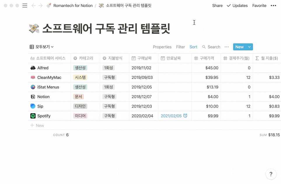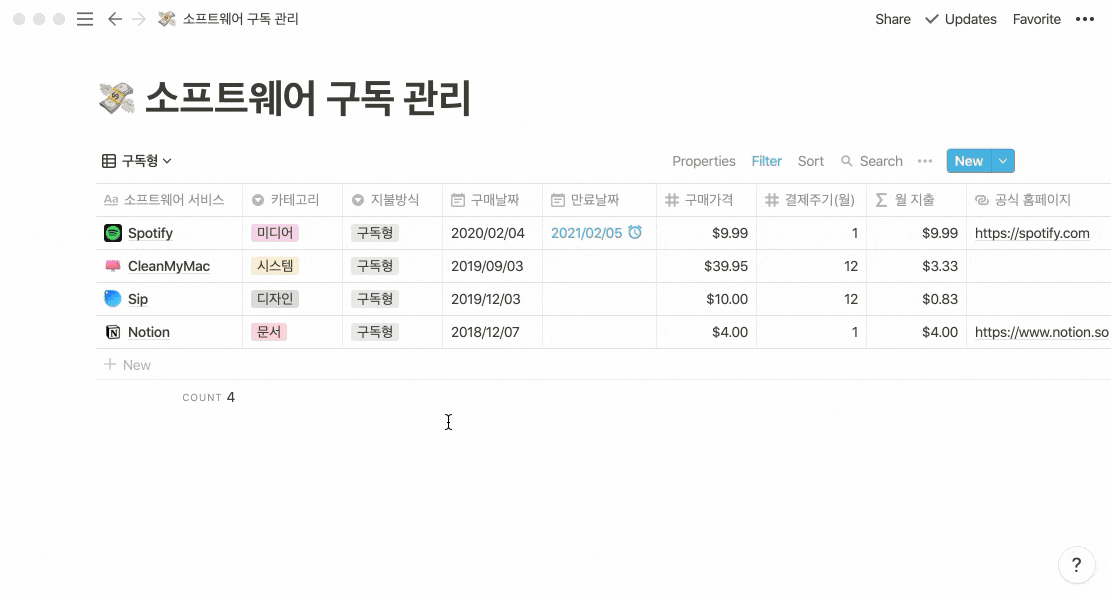 [Notion] 노션으로 앱, 소프트웨어 구독 관리하기