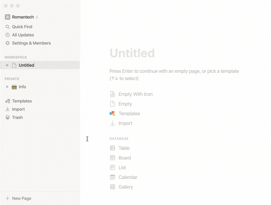 - 노션 좌측 하단 [+New Page] 버튼을 눌러 새로운 페이지 생성