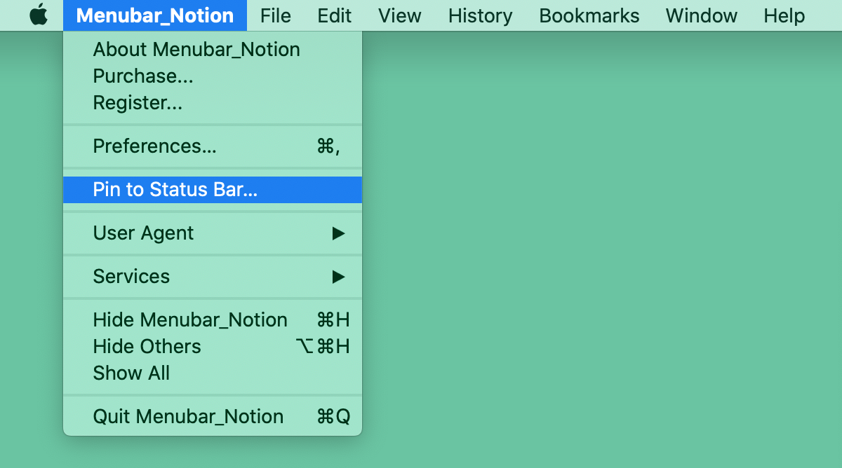 - Fluid를 이용해 Notion 앱을 생성한 뒤 Mac 메뉴바에 고정시켜 사용하는 방법.