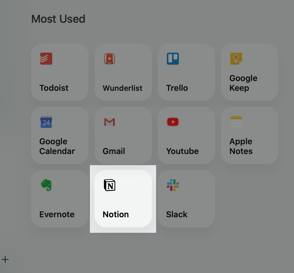 Most Used에 있는 Notion 선택 > 로그인하여 바로 사용 가능 ▼