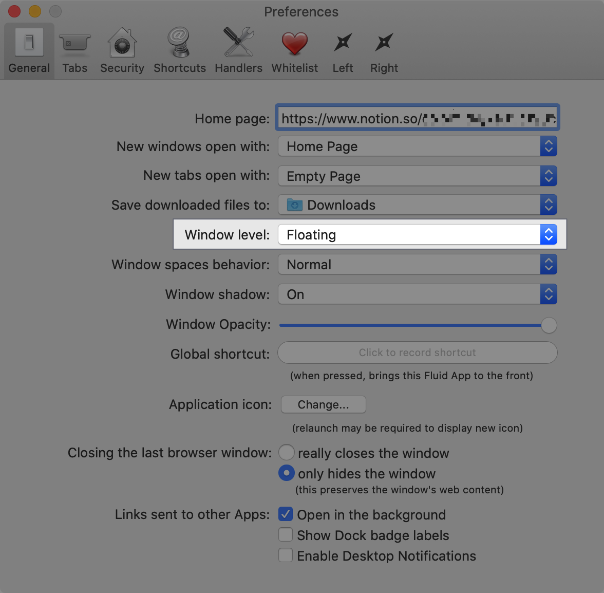 Fluid는 웹페이지를 응용프로그램(App)으로 만들어주는 맥용 툴이다. Notion은 웹 버전을 지원하므로 Fluid를 이용해 원하는 노션 페이지를 Fluid App으로 만들고, 이 노션 페이지 App을 플로팅 윈도우 형식으로 메뉴바에 고정시킬 수 있다. 여기에 커스텀 CSS를 적용하여 디자인을 간결하게 바꿔주면 깔끔한 빠른 메모 입력이 가능해진다.