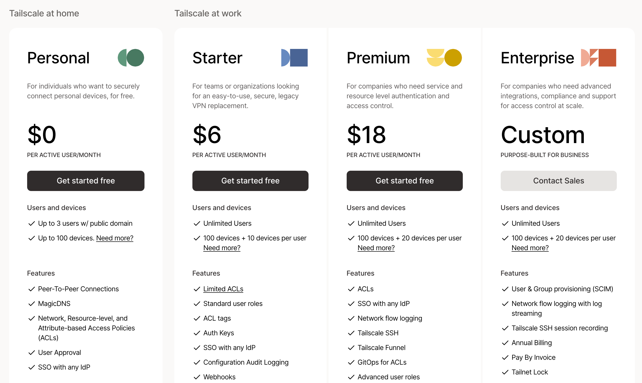 Tailscale 무료 버전은 유저 3명에 100대 기기까지 추가할 수 있어서 결제하지 않고도 충분히 잘 사용할 수 있다.