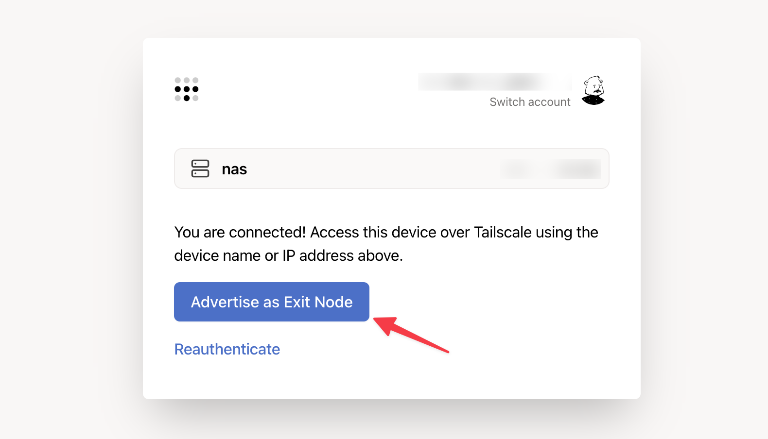 기본적으로 Tailscale은 연결된 장치들끼리의 트래픽만 라우팅 한다. Google, Twitter 같은 공용 인터넷 트래픽에는 영향을 주지 않는다. 하지만 신뢰할 수 없는 WiFi 혹은 해외에서 국내 인터넷 뱅킹 등을 사용하는 상황에선 공용 인터넷 트래픽 라우팅이 필요할 수 있다. Tailscale에 연결된 특정 장치를 Exit Node로 설정하면 모든 공용 인터넷 트래픽을 라우팅 할 수 있다. 즉, 원격에 있는 기기가 Exit Node의 IP 주소를 통해 인터넷에 접속하는 것처럼 만들 수 있다. — 참고 링크